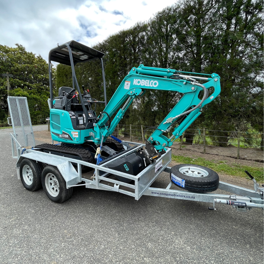 Kobelco 1.7 Tonne Mini Excavator + Trailer, Tilt Hitch and Buckets